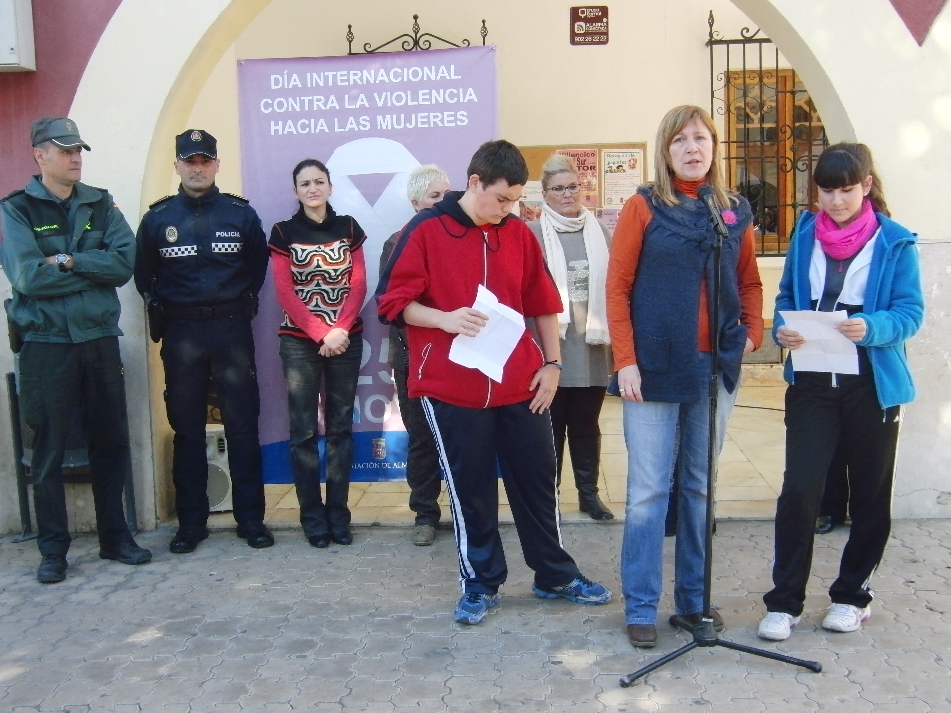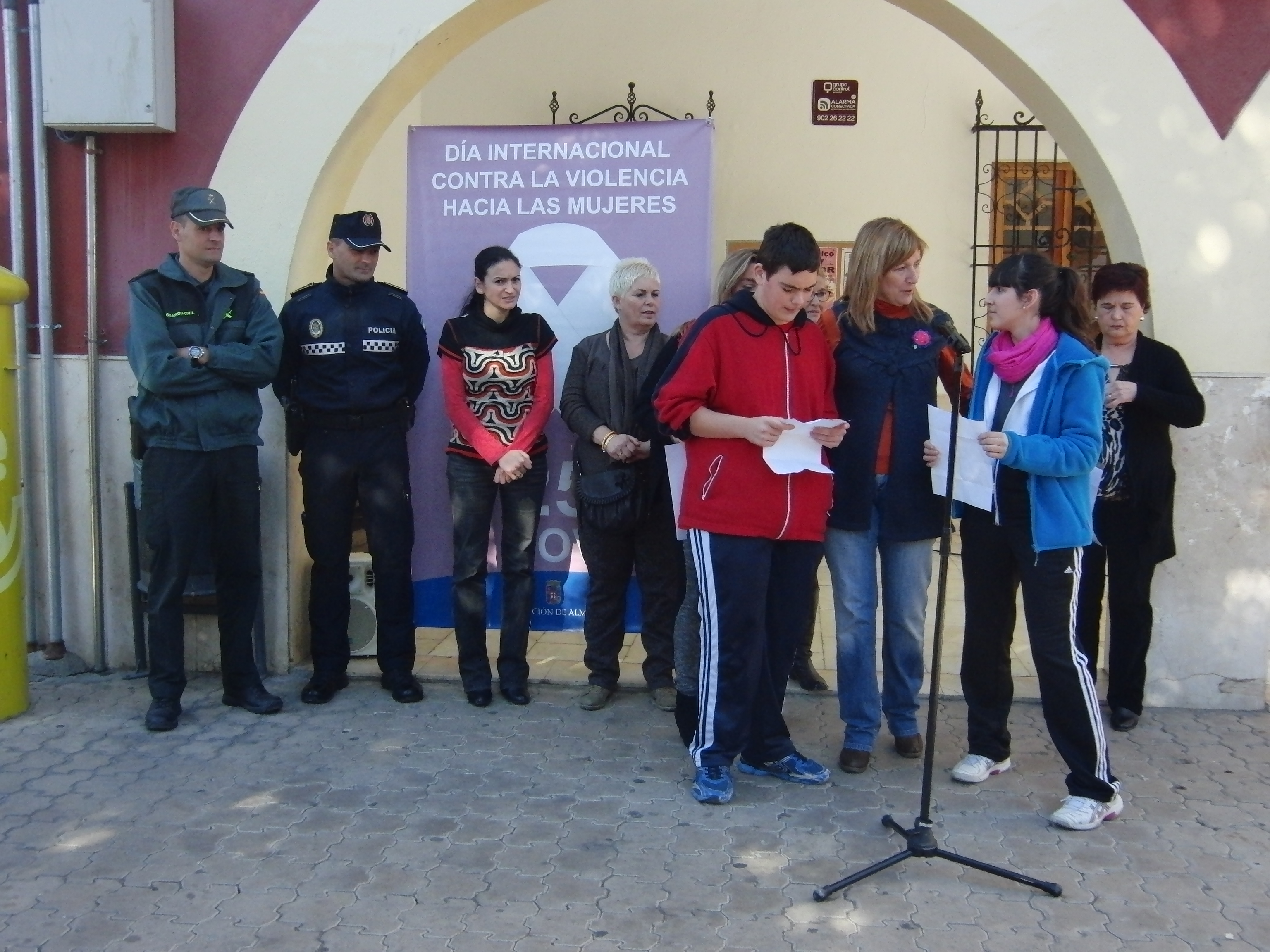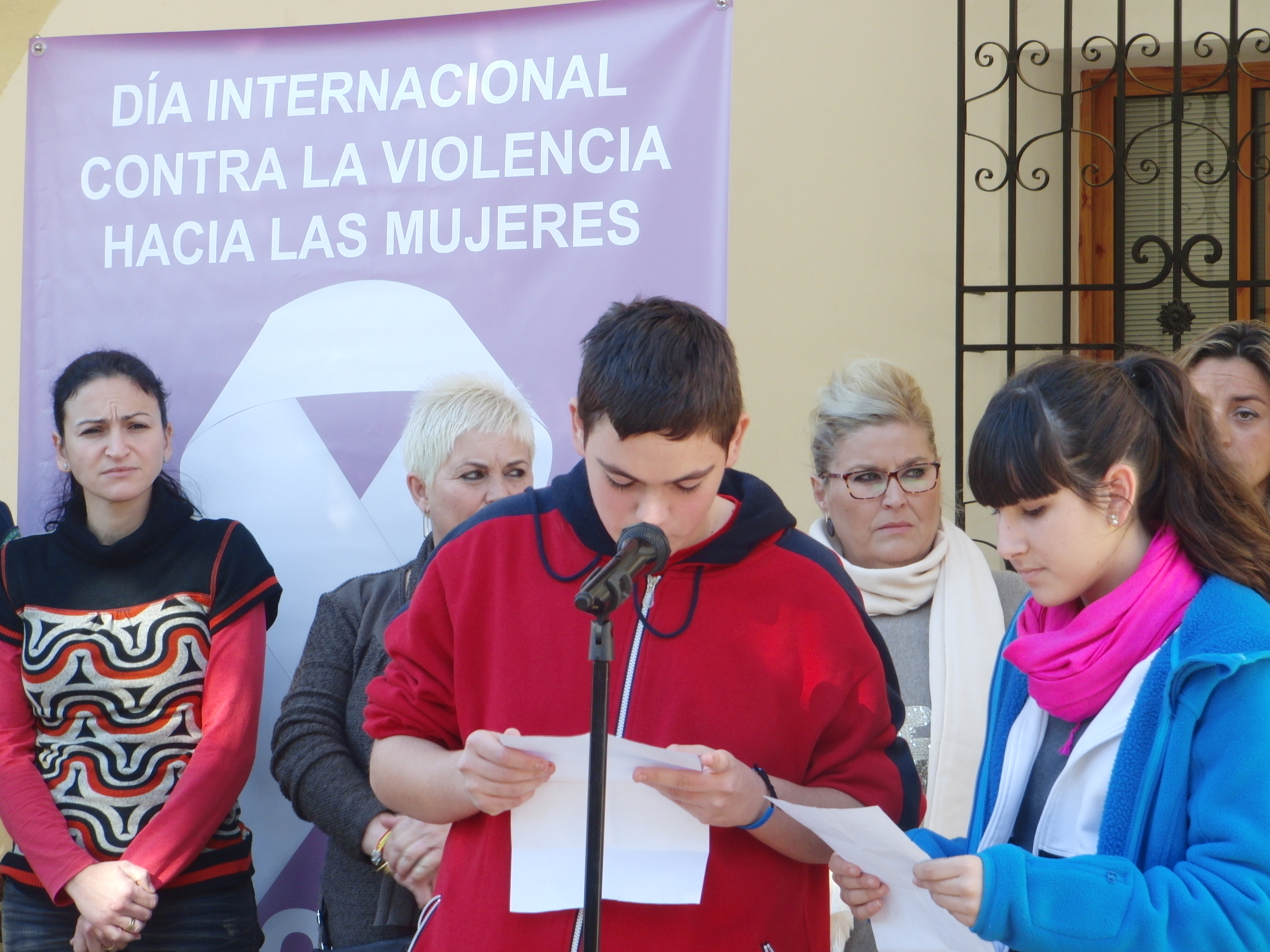 Un grupo de alumnos y alumnas del instituto leyeron nuestro manifiesto en el ayuntamiento, participando con todo el pueblo este señalado día.