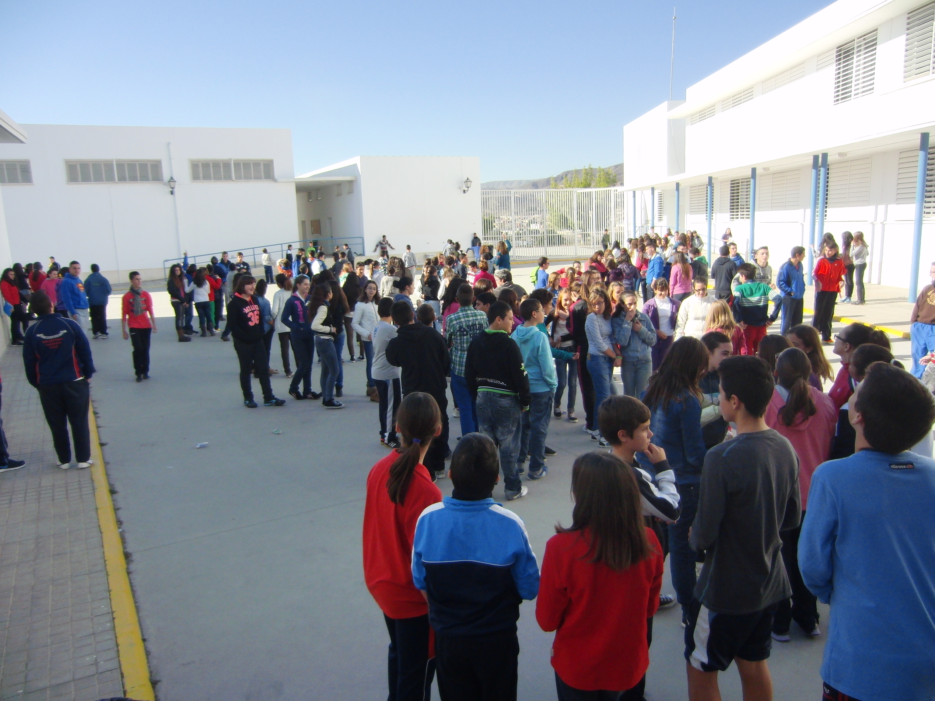 Todos juntos en el patio quisimos recordar a las 45 mujeres que habían fallecido en España por este tipo de violencia machista. Para ello, tras leer un manifiesto en contra de la violencia de género, soltamos 45 globos morados en su recuerdo mientras sonaba la bella canción «Libre te quiero».
