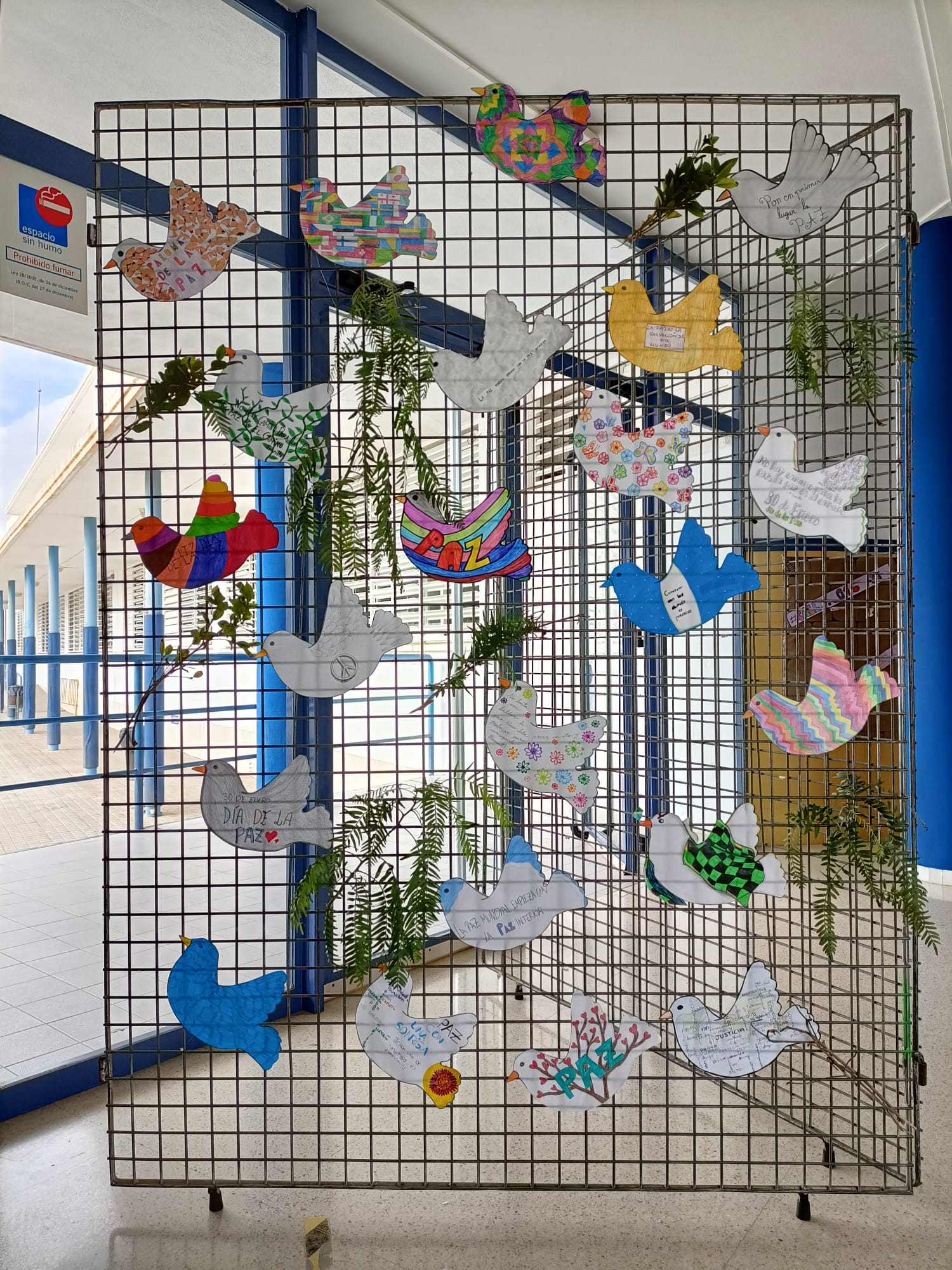 El objetivo principal de esta actividad ha sido la participación de todo el alumnado, decorando con dibujos de palomas, unas letras de mensajes relacionadas con la paz: respeto, solidaridad, tolerancia, etc, que serán expuestas en el municipio.