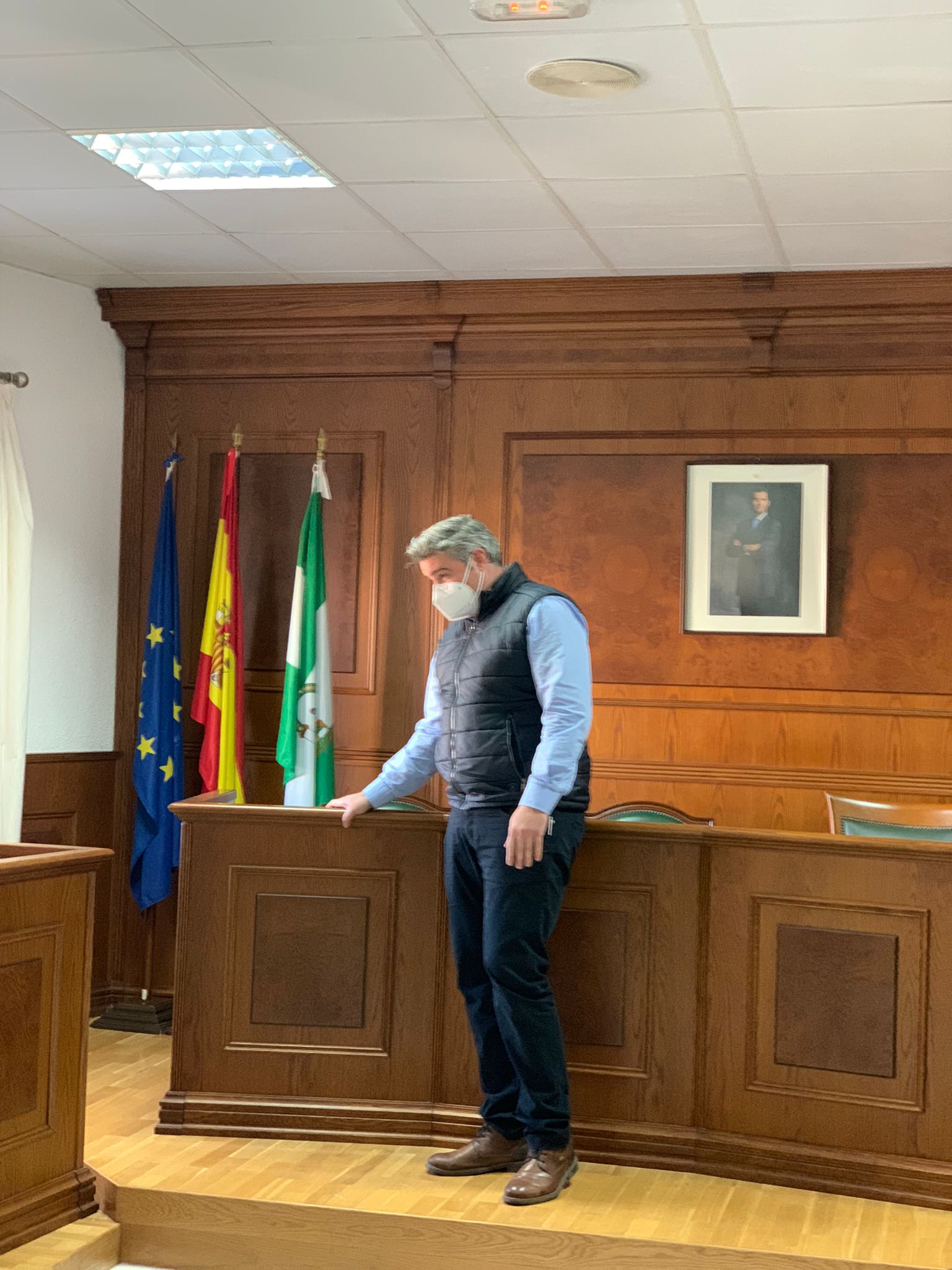 Con motivo de la celebración del día del periodista (el 24 de enero), diez alumnos de 2º de ESO se han desplazado al salón de plenos del ayuntamiento para realizarle una entrevista a Don Manuel Jesús Flores Malpica, alcalde de Viator. Cada uno de estos alumnos que cursan la asignatura de Oratoria y Debate, han preparado una pregunta que han formulado a nuestro alcalde.