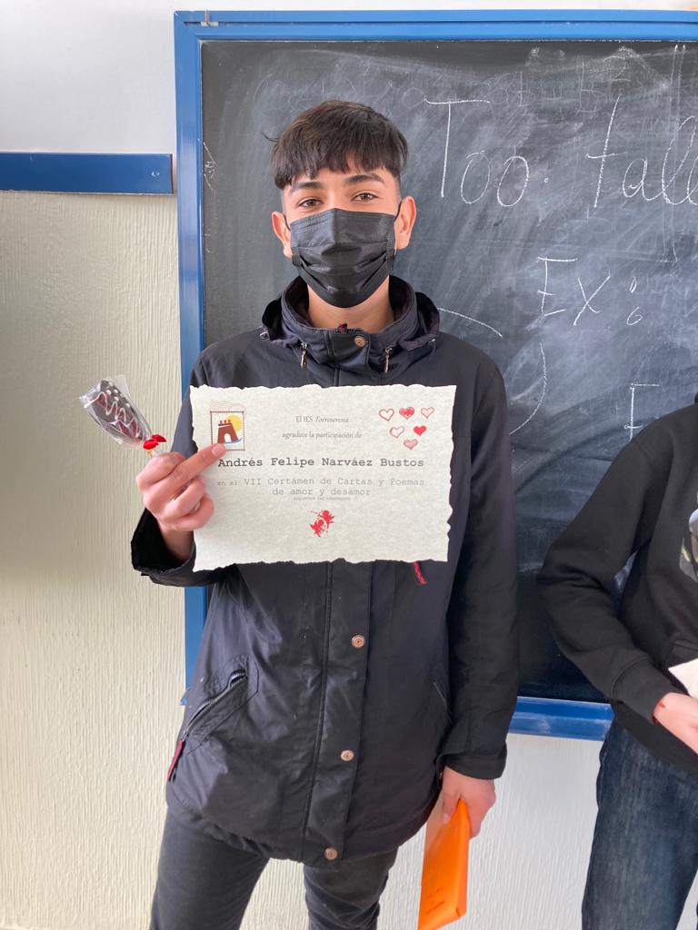 Desde el IES se organiza este concurso con la intención de apoyar la creatividad literaria de todo el alumnado. Aquí tenéis la entrega de los premios del VII CERTAMEN DE CARTAS Y POEMAS DE AMOR Y DESAMOR IES TORRESERENA.