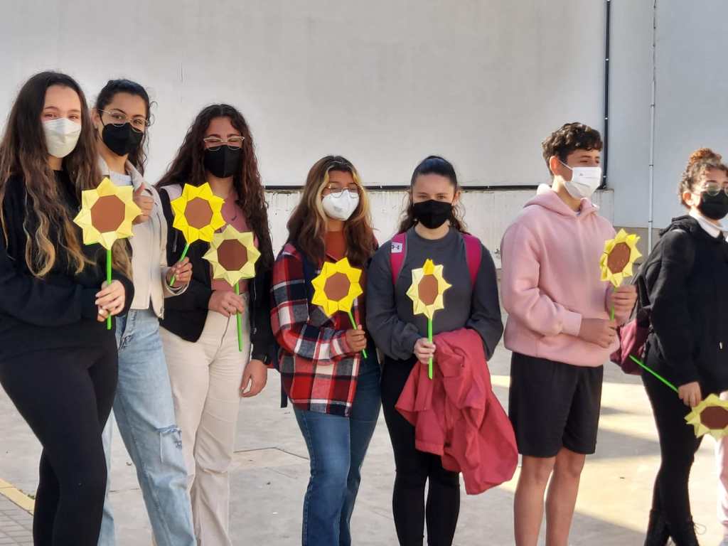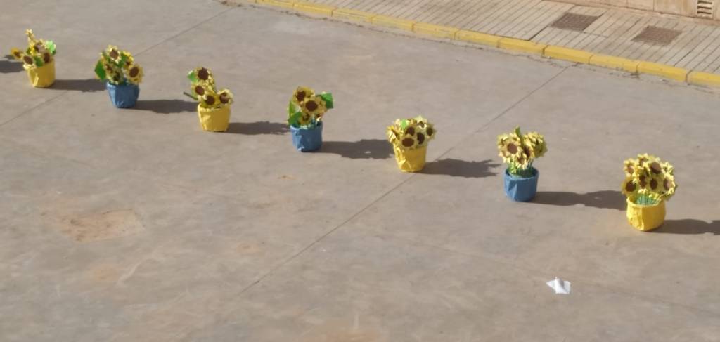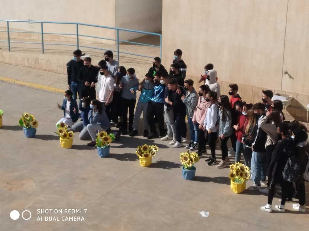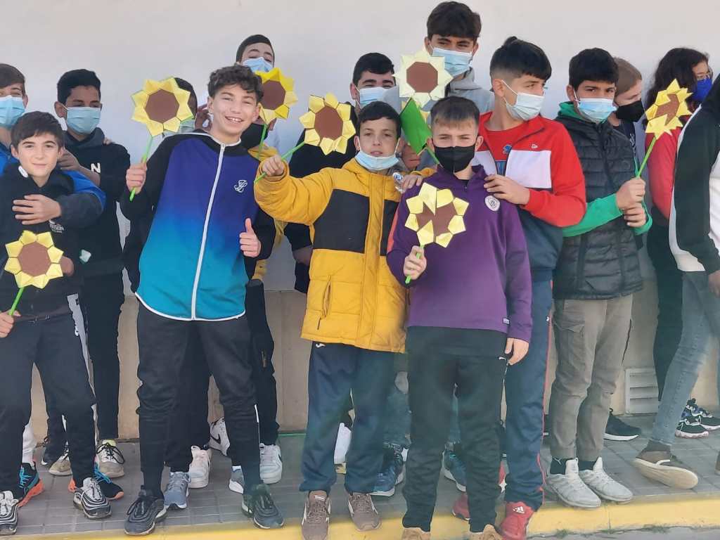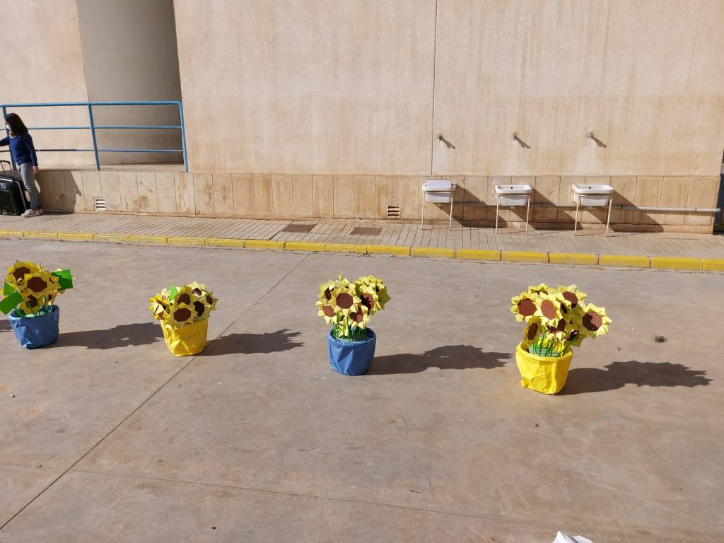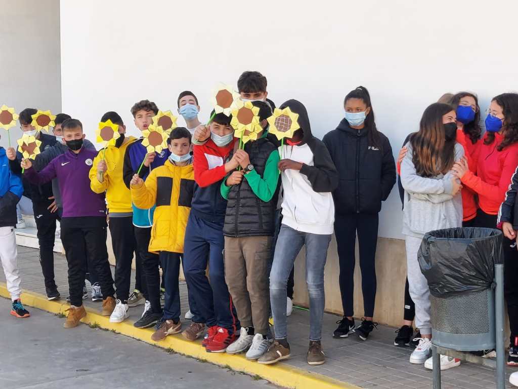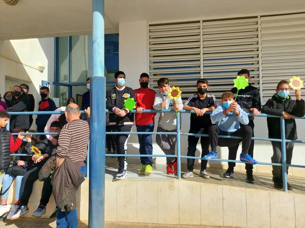 Dicho acto ha consistido en la elaboración y colocación de girasoles en el patio, en la lectura de un manifiesto a favor de la paz y se ha guardado un minuto de silencio. La actividad ha sido organizada dentro del Programa Escuela Espacio de Paz con la colaboración del resto del claustro.