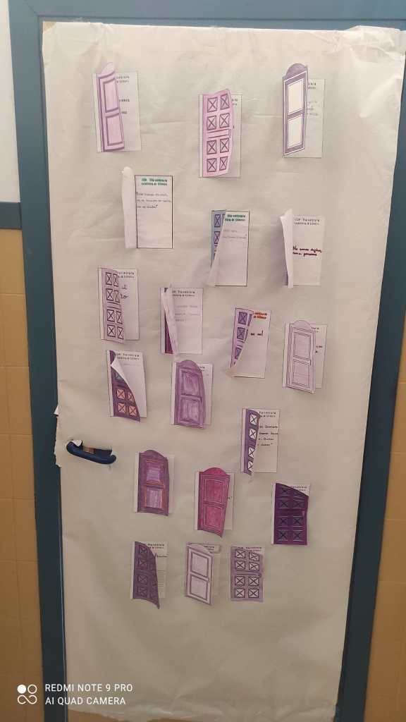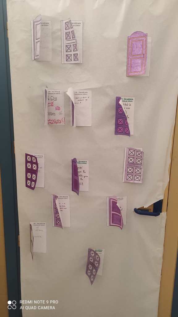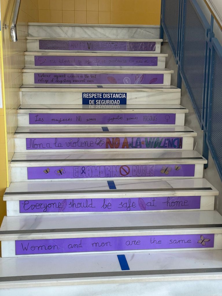 – Elaboración de escalones con mensajes contra la violencia de género realizados en tutorias,con el resto del profesorado y con el plan de bilinguismo.