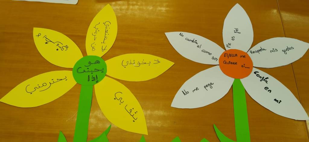 – Elaboración de flores, con mensajes, colocadas en el hall del centro, realizadas en las asignaturas de valores éticos, entre otras.