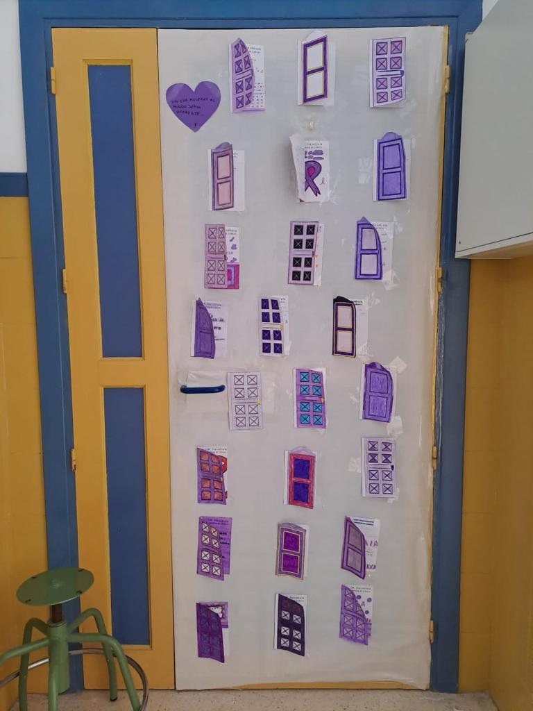 – La elaboración de puertas violetas que se abren para mandar un mensaje contra la violencia.