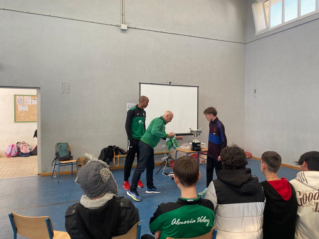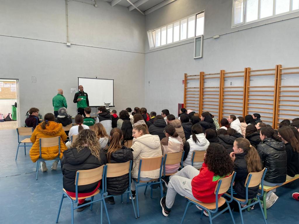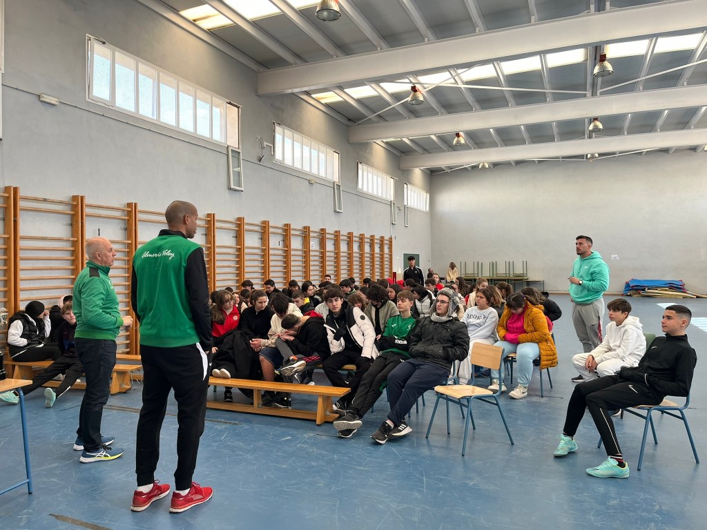 Los alumnos de 3ºESO han asistido a una interesante charla impartida en nuestro centro, por los jugadores de balonmano del Unicaja Almeria , y los han invitado a asistir a su próximo partido. Esta actividad ha sido organizada por el Departamento de Educación Física.