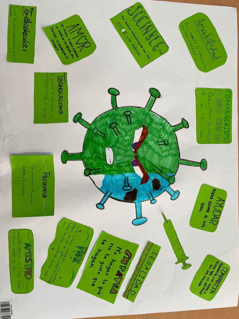 Desde Escuela Espacio de Paz, Charo, ha elaborado este bonito Proyecto: La vacuna del buen trato. Este Proyecto se ha realizado en las tutorías para luchar contra el violentovirus, diseñando vacunas llamadas del buen trato. Y se ha realizado un manifiesto con los compromisos y peticiones que se han acordadoen cada una de las clases.