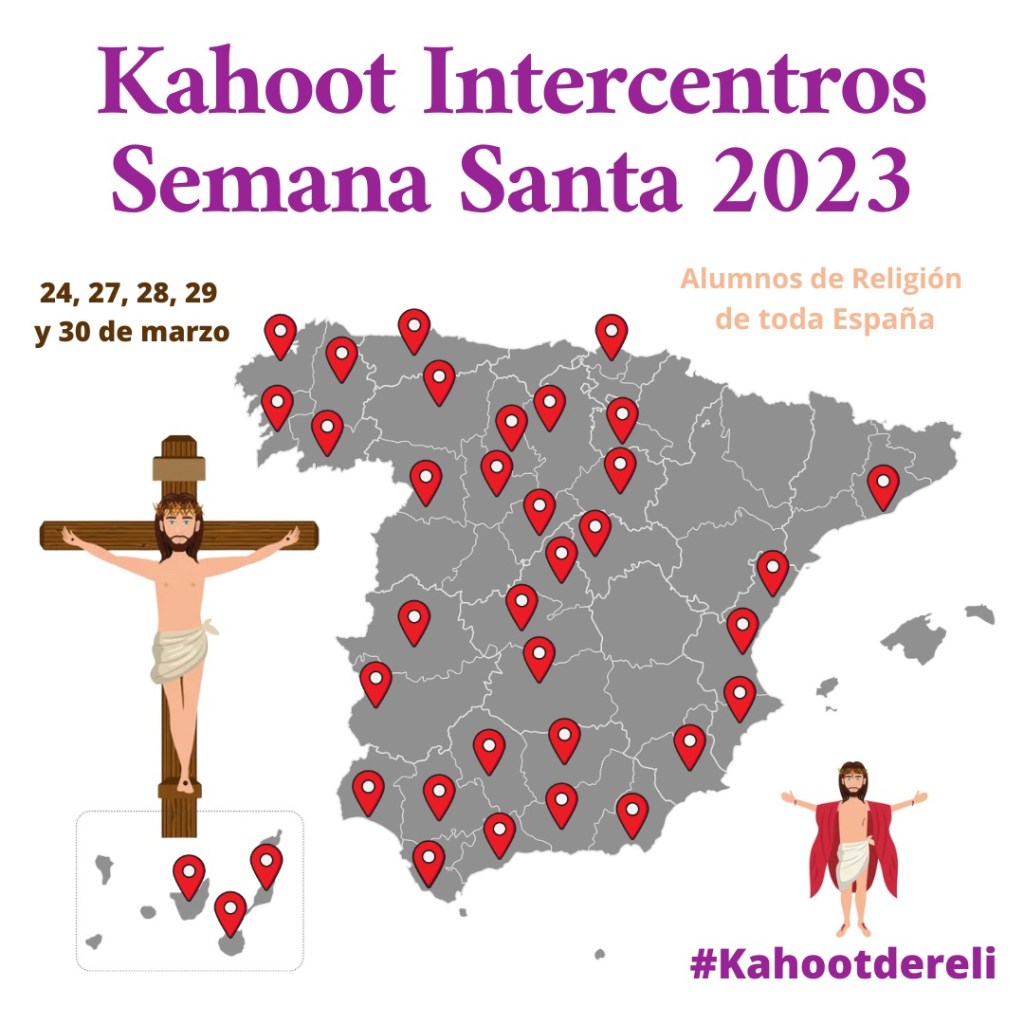 Del 24 al 30 de este mes, nuestro instituto, va a participar una vez más, en el Concurso Kahoot Intercentros Semana Santa. El profe de religión Indalecio con grupos de 1º, 2º, 3° y 4º, buscará que el alumnado disfrute junto a compañeros de otros centros de toda España, seguro que conseguirán una buena clasificación.¡¡ Mucha suerte!!
